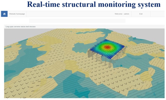 The data management and application module mainly include steel structure safety visual monitoring, system management, data downloading, information querying, and pre-alarm information releasing. Monitoring personnel can learn the safety dynamics of the converter station steel structure at any time and anywhere by utilizing the cloud platform through various clients, quickly querying and downloading the data required for steel structure safety assessment, and obtaining monitoring reports with pictures and text. At the same time, users can also obtain early warning information when the structure first changes abnormally, such that the monitoring personnel can take appropriate measures in a timely manner in order to prevent the occurrence of safety accidents. In addition, the monitoring personnel can interact with the patrol personnel in real-time, according to the needs of the monitoring project and the expectations of various emergencies.
