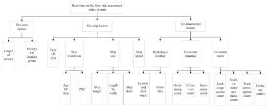When pursuing efficient safety management, there is a clear need to perform comprehensive real-time monitoring of vessel navigation in port waters. In fact, early warning indicators should be obtained in real time to support real-time monitoring. In existing traffic safety warning index systems, real-time warning indices are most often available, so these cannot support rapid and efficient responses. We propose an index system that eliminates the disadvantages of such indexes, highlights real-time performance, and reflects the natural environment, navigation orders and status, and the location of the ship in sensitive waters. A real-time early warning index system should not only monitor ship navigations in port waters, but should also provide local monitoring of ships, which makes the system more efficient [40,41]. We propose a real-time traffic flow assessment system based on historical marine accident data and expert knowledge derived from a questionnaire-based input, which is summarized in Figure 5.