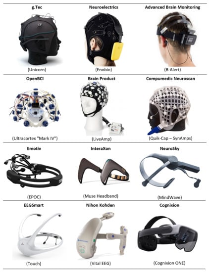Furthermore, when the various industries’ potential expands, like entertainment and education, many companies join the market with very different objectives influenced by the emerging market sectors and approaches. Not all companies design conventional BCI systems; however, investments in consumer goods would undoubtedly and significantly affect the infrastructure, price, and usability for the BCI systems (http://bnci-horizon-2020.eu/images/bncih2020/FBNCI_Roadmap.pdf, accessed on 25 February 2021). Some companies provide both wired and wireless systems, and some companies only focus on developing and designing wireless equipment, such as InteraXon, Emotiv, and Neuroelectrics. Over the decades, the EEG hardware technology has also advanced. Many wireless multichannel devices have been developed, offering high-quality EEG and physiological signals in more straightforward, compact, and comfortable configurations compared with conventional complicated systems. Wireless systems are more convenient for users because they facilitate free movement. Moreover, wireless equipment has proven to be suitable for clinical trials [279]. However, some challenges need to be addressed regarding EEG equipment in sensor development. Not many researchers are deeply engaged in studying the BCI sensor design because it is generally a very complicated subject [280]. Sensors are applied to both wired and wireless equipment because they are attached to the human head. The electrode position must be accurate. Furthermore, the sensor material must be selected appropriately to avoid any side effect.