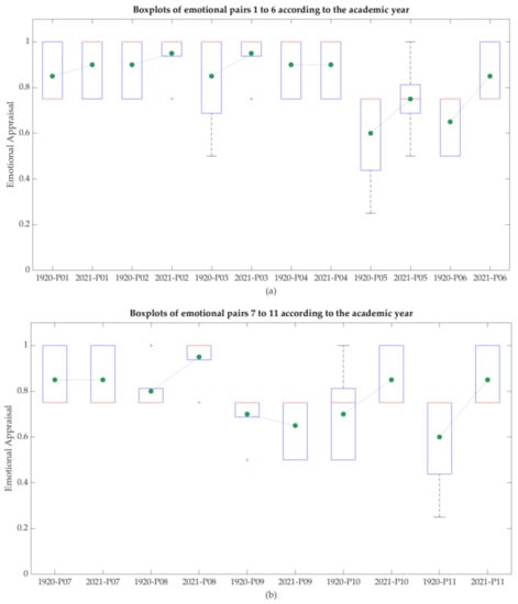 Emotions may have a great effect on human beings, as posited in different works [105,106]. When focusing on educational science different studies have analyzed the impact of emotions on students’ motivation and interest or academic achievement [107,108], since emotions play an important role in learning [109]. Henceforth, getting data about students’ emotions once they have experienced the whole learning process of a specific subject may provide relevant information to the instructors to adjust the teaching process in the next future.