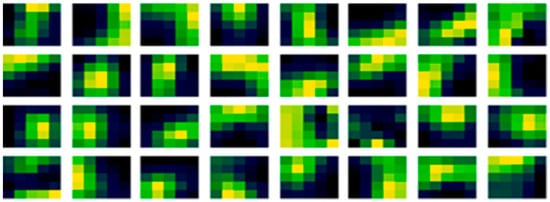 In this model test case, the dense perceptron layer’s initialization tensor is re-indexed from the receptive field mapping of the convolved filters in a previous layer to a matrix of activations and neurons as the subscripts in the Equation (19):