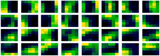 Using the state-of-the-art He et al. initialization limit values, the model in Figure 15 provided 85.57% cross-validation accuracy with the proposed (non-random) method. This was higher than 82.28% provided with random numbers. Also in the first epoch after initialization, the proposed non-random method achieved 54.69%, which was also higher than the 44.89% with a random number initialization.