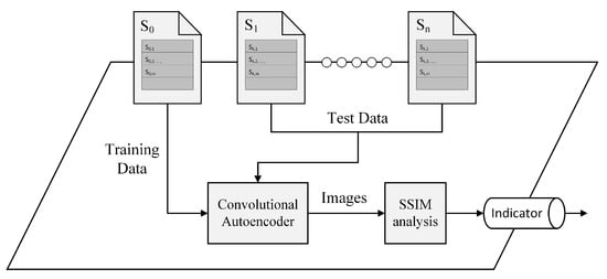 The general procedures of our spatial co-location detection process inside the Co-location detector can be seen in Figure 2. Upon receiving magnetometer readings, it trains an unsupervised deep learning model, convolutional autoencoder, using the pre-processed subject’s mobile magnetometer data. After the model learns how to reconstruct the training data which belongs to the subject’s mobile phone, it will then try to reconstruct the test data, which eventually came from the other users’ mobile phones. SSIM [,] indexes analysis between the original and reconstructed test data can then be used to recognize the spatially co-located individuals (for a detailed procedure, see Section 3.2). The Co-location detector will return an indicator if it finds one or more individuals that were spatially co-located with the subject in order that the local server may inform the corresponding individual(s) for further purpose.