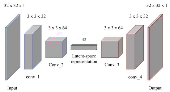 The convolutional autoencoder model inside the co-location detector is depicted in Figure 3. Four convolutional layers were implemented. For every convolutional layer, LeakyReLU and batch normalization layers were also added. Thirty-two neurons were used for our latent space representation. Mean squared error (MSE) was still used as the objective function, which tries to minimize the difference between each pixel value of the input and each pixel value of the output (reconstructed) train images.
