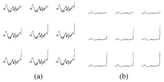 - Normalizing the total intensity:Next, the total intensity (F) was normalized such that all values are within the range of 0 and 1 to increase the model accuracy. The normalization method is formally defined in Equation (2).where is the normalization result of the ith device.