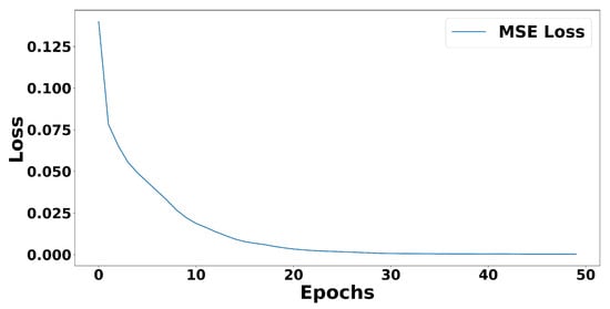 When we trained our convolutional autoencoder model on this dataset, it took ten epochs, approximately 7.28 s, for our model to converge, as can be seen in Figure 11. This indicates that it would take around 34.944 min to train 24 h data. This training duration is similar to the training duration in [].