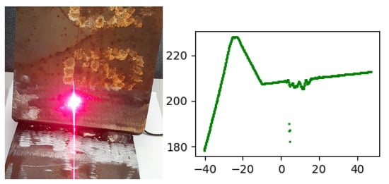 Recently, several methods have been proposed for weld seam tracking, where weld seam or weld groove parametrization (feature extraction) was a part of the procedure. In most of the proposed methods groove parametrization was done at the camera image level, i.e., using camera image points or pixels [,,,]. Image points can be seen as raw data, which gives more flexibility in choosing filtering, processing and parametrization techniques. In our work the proposed procedure used triangulated sensor points for analysis, i.e., 2D points given in the coordinates of local sensor coordinate frame. This can be advantageous if access to raw image data is not possible, when commercial line laser sensors are used. Some methods using triangulated points have been also previously reported (e.g., []), however the methods did not include strong data noise caused by the reflections of a laser.