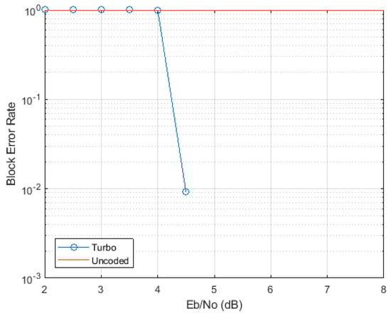 - MathWorks, Estimate Turbo Code BER Performance in AWGN. Available online: https://www.mathworks.com/help/comm/ug/estimate-turbo-code-ber-performance-in-awgn.html (accessed on 20 May 2019).