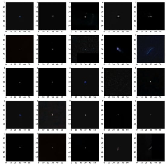 In image classification and recognition tasks, convolutional architectures (CNNs), regardless of depth, have a structural advantage over other types of statistical classifiers and usually outperform them. Therefore, in this paper, we chose to design an approach based on deep convolutional networks. Several recognised CNN-based classifier models were considered, including AlexNet [42], ResNet-50 [43], Xception [44], DenseNet201 [45], VGG16 [46], NASNetLarge [46] and MobileNetV2 [47]. The possibilities of using the concept of transfer learning were also analysed, where such networks are pretrained for large, standardised data sets, such as ImageNet [48]. The transfer learning approach to classifying the CREDO data was already discussed in [49]. Due to the peculiarity of the problem, quite unusual input data and a small spatial size of the signal in the images (only a few to a maximum of several dozen pixels), we decided to develop a dedicated architecture tailored to the specifics and requirements of the problem. To obtain the optimal classifier we explored different architectures (taking into account a constraint related to the relatively low resolution of input images) and available hyperparameter values, like learning rate, batch size, solver, regularisation parameters, pooling size, etc. Section 2.2 presents the best classifier setup we found.