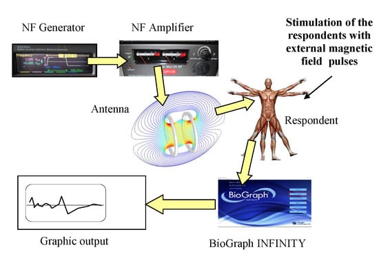 The low-level measurement of low frequencies (3 Hz–30 kHz) [] performed to investigate the relationship between changes in the human body and electromagnetic field (EMF) variations can be considered an interdisciplinary branch of science encompassing a variety of research methods and approaches.