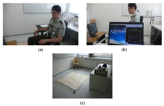 The main part of the laboratory-based research rested in collecting extensive psychological data from all participants through several psychological tests, including the ASS-SYM test (from the German Änderungssensitive Symptomliste); this psychometric tool measures the respondents’ sensitivity to the changes in the load-to-rest transition. The instrument comprises six indication areas containing a total of 48 easy-to-understand items (8 items per area); these focus on the symptoms that are sensitive to change in autogenic training and progressive relaxation. The list of symptoms includes general indicators of well-being, relaxation experiences, and discomfort and strain, with no indication of psychopathologies. The six broad areas cover the following factors: physical and mental exhaustion, nervousness and mental tension, psychophysiological dysregulation, performance and behavior-related problems, self-control difficulties, and general symptoms and problems []. The results of the above psychological tests were correlated to the outputs of the psychophysiological measurements (from 22 April 2014 to 26 June 2014).