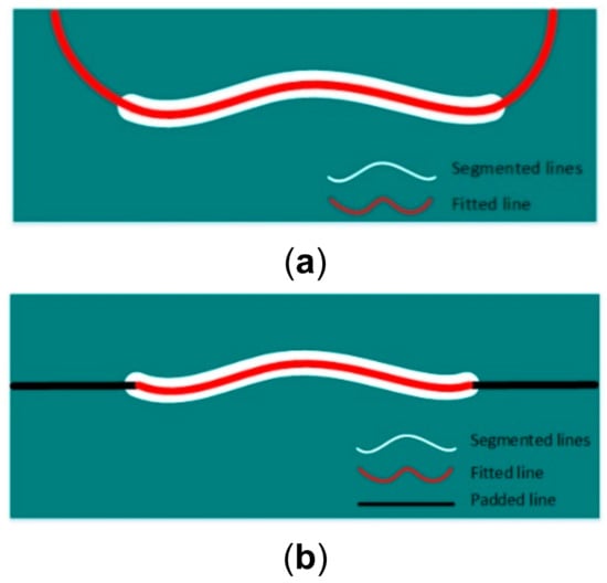 The fitted line and the padded line are illustrated in Figure 7a,b, respectively.