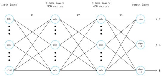 The network includes 4 layers, which are 1 input layer, 2 hidden layers, and 1 output layer. The input layer contains 29 neurons, which respectively represent the 29 sensor state values given by the TORCS environment. In [] the two hidden layers include 300 and 600 neurons respectively, and each neuron uses relu as an activation function. This paper changes the number of neurons in the second hidden layer to 400 in order to reduce overfitting. The output layer contains 3 neurons, which output the three values of steering, throttle, and braking respectively.