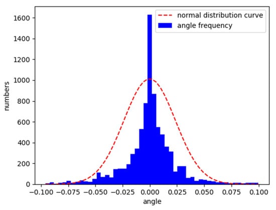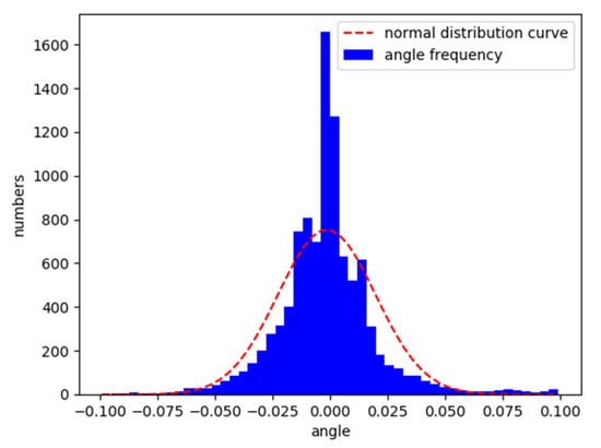 According to the analysis in Figure 8 and Figure 9, the trained model can follow the lane well. The angle between the driving direction of the vehicle and the centerline of the lane is mostly within the range of −0.05 to 0.05. The angle is approximately normally distributed as a whole.