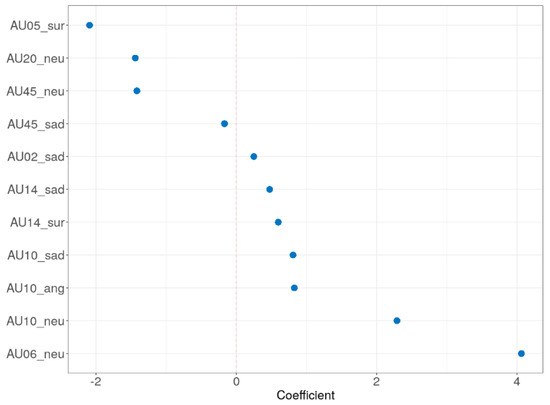 The adaptive LASSO results. AU, action unit; ang, angry; neu, neutral; sur, surprise.
