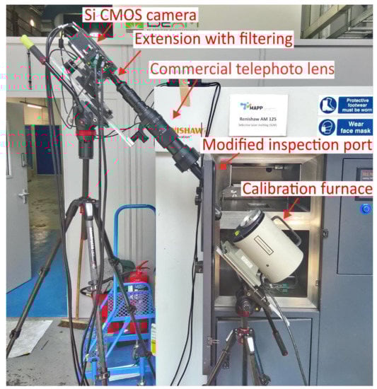 Information regarding the thermal fields is most readily accessible from the surface of the print in Powder Bed Fusion (PBF) AM processes. This is in the form of emitted thermal radiation. The quantity of emitted radiation (radiance) in one or more wavelength bands can be used to infer the temperature of the surface []. There are many examples that make use of measurements of radiance to infer surface thermal fields of the HAZ [,,,,,,].