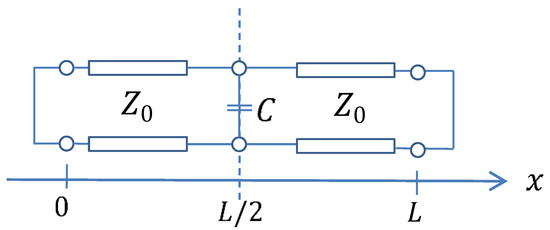 Analytical model for the effect of the human finger (parallel capacitor C) when touching the resonator. The loop was modeled by a SC transmission line (TL) of characteristic impedance where a capacitor C was considered at the center of the TL.