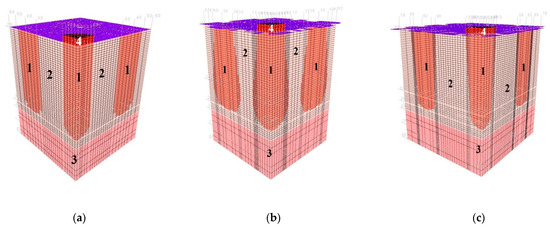 Discrete models of ground improved by dynamic replacement—Subgroup II, L = 2Dh: (a) IIa, (b) IIb and (c) IIc.