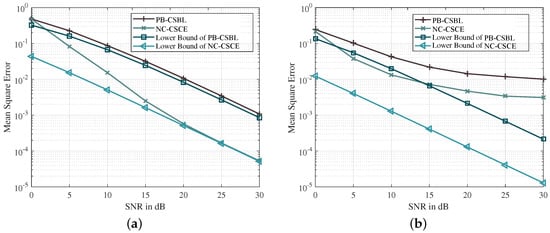 respectively. In addition to what has been discussed when analyzing the PB-CSBL algorithm, Equations (40) and (41) also prove that the NC-CSCE algorithm utilizing pilot symbols and unknown data symbols can achieve a smaller MSE compared with the PB-CSBL algorithm.