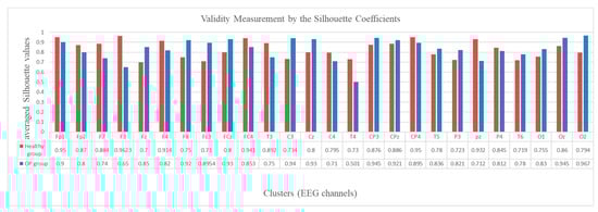 To evaluate the validity of the created clusters, the average of the silhouette coefficients (Equation (10)) was measured in every cluster, as shown in Figure 12. The graph shows that all the average silhouette values are positive and very close to 1, which represents a high goodness value for the clusters.