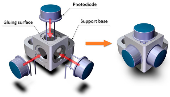 Each set is composed of 3 OSRAM BPX 61 type photodiodes attached to a support base using two-component structural adhesive F-2216B/A (Scott Howell 3M St. Paul, MN, USA), as shown in Figure 3.