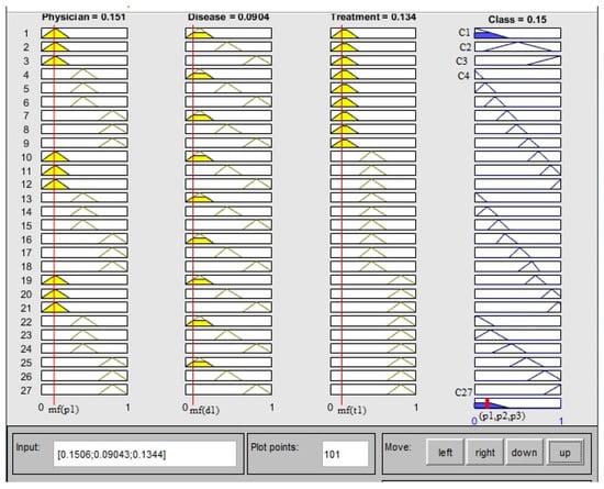 Matlab simulation of fuzzy logic, rules evaluation for Physician, Disease and Treatment.