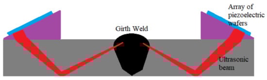 The acoustic reflectometry technology in the form of an ultrasonic phased array was used in [6,7,8,45] for the detection of weld defects. Weld defects are irregularities at the welding point joining two different pipelines. These irregularities are often due to corrosion at the welding points, mechanical damage due to excessive vibrations, and poor welding skills. Cracks in the wall of a pipeline are difficult to detect since these defects often exist in the form of discontinuities that contribute to only minor changes in the surface roughness and irregularities. Weld defects, on the other hand, due to the bulging nature and relatively larger surface area of individual welds compared to cracks, contribute to changes in the surface roughness at the welding points. Therefore, ultrasonic waves that have sub-centimetres wavelengths are suitable to detect and localise weld defects in a pipeline network.