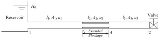 - Duan, H.F.; Lee, P.J.; Ghidaoui, M.S.; Tuck, J. Transient wave-blockage interaction and extended blockage detection in elastic water pipelines. J. Fluids Struct. 2014, 46, 2–16. [Google Scholar] [CrossRef]