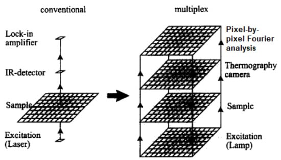 - Wu, D.; Busse, G. Lock-in thermography for nondestructive evaluation of materials. Rev. Gen. De Therm. 1998, 37, 693–703. [Google Scholar] [CrossRef]