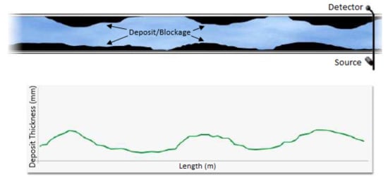 In reflectometry, an audible sound or ultrasonic wave, in the form a small signal pulse, is injected into the pipeline, using pulse generators to remotely detect obstructions, such as blockages, and pipeline components, such as valves, flanges and T-sections, along the length of the pipeline [44]. In the presence of an obstruction in the path of the transmitted pulse, a portion of the pulse is reflected towards the acoustic source. The reflected pulse is measured and analysed in the time and frequency domains to obtain an estimation of the location and the size of the blockage [42].