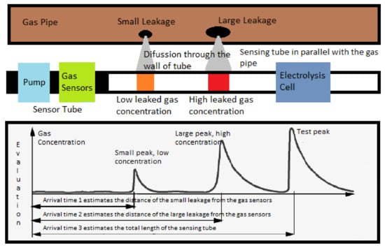 - Hou, Q.; Jiao, W.; Zhan, S.; Ren, L.; Jia, Z. Natural gas pipeline leakage detection based on FBG strain sensor. In Proceedings of the 2013 5th Conference on Measuring Technology and Mechatronics Automation, ICMTMA 2013, Hong Kong, China, 16–17 January 2013. [Google Scholar] [CrossRef]