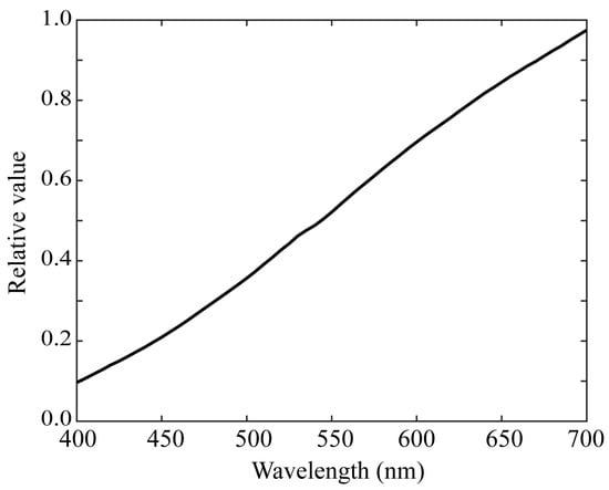 where  and  represent the spectral reflectance of the color checker in Figure 10b and the illuminant spectral power distribution in Figure 11, respectively.
