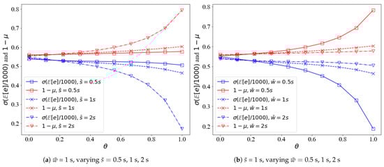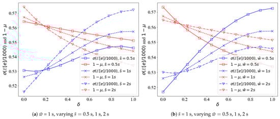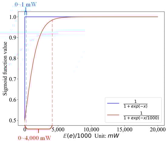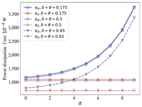 Three sets of parameters, (0.175, 0.175), (0.65, 0.65), (0.5, 0.5), were used to test the sensing power dissipation against in base sleep duration and base working duration . The result is shown in Figure 9. When the distance between the event and the sensor, and the base sleep duration and base working duration, are fixed ( m, s, s), the working power increases exponentially with , and the sleeping power dissipation remains unchanged for . With the increase of step-size parameter and , both the working power dissipation and the sleeping power dissipation decrease.
