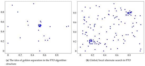 The Fibonacci tree optimization algorithm (FTO) [] is a sophisticated optimization algorithm. It resolves the optimal solution of the problem by alternating iterations of global scanning and local scanning. It fully utilizes computer memory to save the optimization process. FTO can provide a reasonable approximation of a global optimum for a function with ample search space. In each iteration, the golden ratio separation is used to compress the search space, so the local optimal solution can also be achieved. It particularly applies to multi-peak/multi-modal function optimization.