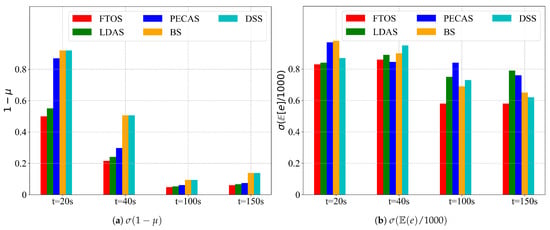We have implemented several sensing scheduling strategies including LDAS, PECAS, BS and DSS. These strategies all make similar assumptions. Figure 17 shows the results. FTOS () accomplished better detection accuracy and consumes the bare minimum of energy compared to the other sensing scheduling strategies. For sensing duration (t = 20~150 s), all sensing scheduling strategies improved, viz., and decline with time.