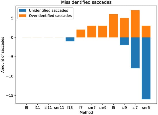 Number of misidentified saccades by the different methods.