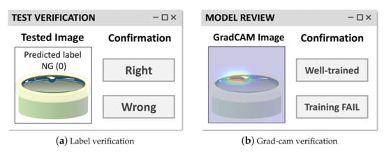 Finally, in the model management stage, we propose an effective model update method that can maintain and enhance the deep learning models of the product inspection system. In order to perform this, we first employed Grad-cam [], which provides visual explanations from deep networks and helps system managers to understand predictions of deep learning (Section 3.3.1). The proposed model update method includes the model fine-tuning and re-training processes, as described in Section 3.3.2). The proposed system is fully automated. Moreover, it exhibits outstanding system maintenance, performance, and stability. Owing to the proposed system, even system managers who do not understand deep learning techniques can manage the system very easily.