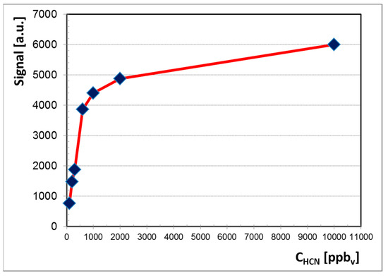 The analytical figures of merit related to HCN detection and quantification are very similar, for instance, to those reported by us recently for another toxic industrial compound—carbon disulfide—using a ToF IMS with tritium radioactive ionization source [8].