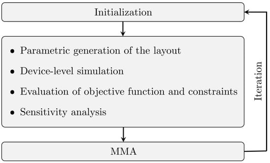 An overview of feMEMSlite is provided in Figure 1, along with the main iterative steps followed by the automatic design procedure. The general conceptual scheme of feMEMSlite is similar to feMEMS presented in [], and the main differences are given by the use of a more efficient and more flexible schematization of the MEMS structure at device level.