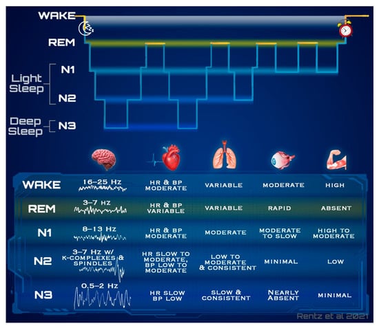- Schupp, M.; Hanning, C. Physiology of Sleep. Br. J. Anaesth. 2003, 3, 69–74. [Google Scholar] [CrossRef]