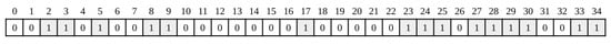 K-ary Hierarchical Bit Vector Representing 2, 3, 5, 8, 9, 17, 23, 24, 25, 27, 28, 29, 30, 33, 34.