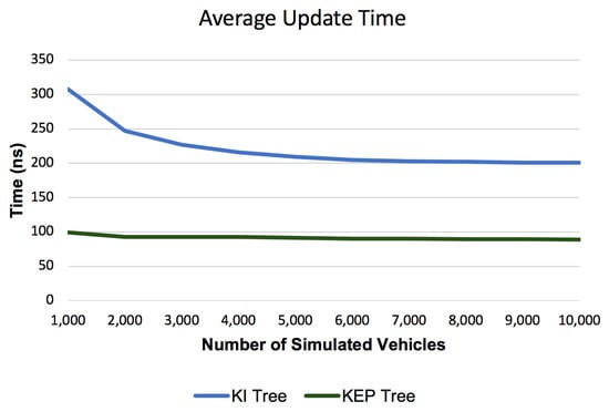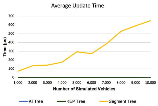 - the total time for query and update operations during route generation is less than 150 s for KI Tree, meaning an average of less than 15 ms for each vehicle. KEP Tree is more than 1.5 times faster thank KI Tree.