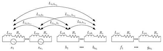End turns, end rings, and slots leakage inductances, included in the diagonal matrix, need to be pre-calculated, as usual in the technical literature, where explicit expressions for these inductances can be found in [32,33,34]. Only the analytical computation of in (3) will be carried out in this work.