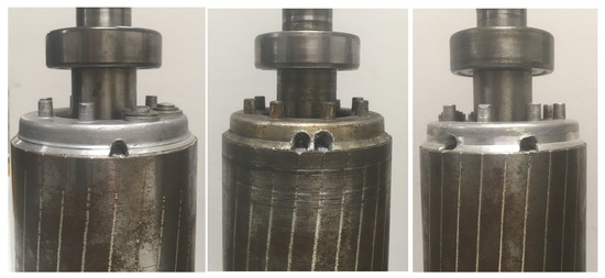 - Rojas, C.; Melero, M.; Cabanas, M.; Orcajo, G.; Donsin, M.; Solares, J. Analysis by the finite element method of the influence caused in the current distribution in rotor squirrel-cage induction motor and current spectrum by the number and distribution of faulty bars during a rotor failure. In Proceedings of the IEEE International Symposium on Diagnostics for Electrical Machines Power Electronic Drives (SDEMPED 2001), Grado, Italy, 1–3 September 2001; Volume 1, pp. 479–486. [Google Scholar]