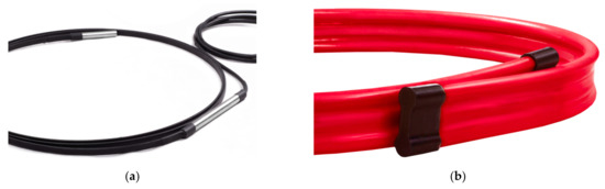 Despite the above mathematical idea being relatively easy and described before in the literature [43,44], attempts to implement it in practice have never resulted in a ready-to-use solution with documented scientific research and a range of proven field installations. Achieving the high precision in the fibres’ arrangement was possible thanks to the construction of an advanced technological line, allowing the production of continuous composite elements in a pultrusion process. The composite core of the sensor is characterized by a very low elastic modulus (≈3 GPa) and very high strain range (±4%).