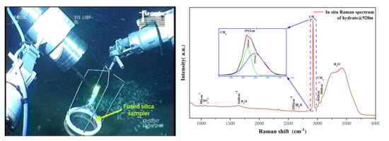 - Zhang, X.; Du, Z.; Luan, Z.; Wang, X.; Xi, S.; Wang, B.; Li, L.; Lian, C.; Yan, J. In Situ Raman Detection of Gas Hydrates Exposed on the Seafloor of the South China Sea. Geochem. Geophys. Geosystems 2017, 18, 3700–3713. [Google Scholar] [CrossRef]