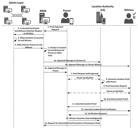 - Number of Entities/Witnesses Involved [9,13]: Distributed location proof systems in general, and any witness-oriented location protocol in particlazzur, involve two or more entities in the proof protocol. The number of entities involved in location proof protocol provides the reliability of the physical presence of a user at a location. However, having more entities in the protocol provides reliability at the cost of proof generation time.