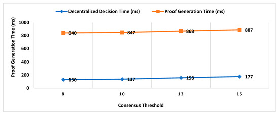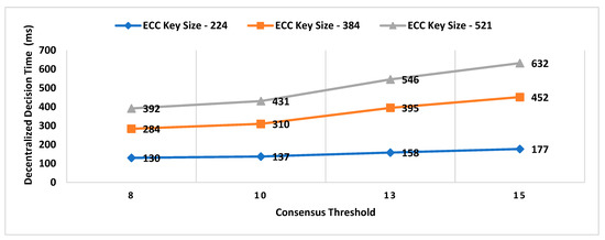 Consensus threshold and key size impact on decentralized decision time.