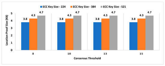 Consensus threshold and key size impact on location proof size.
