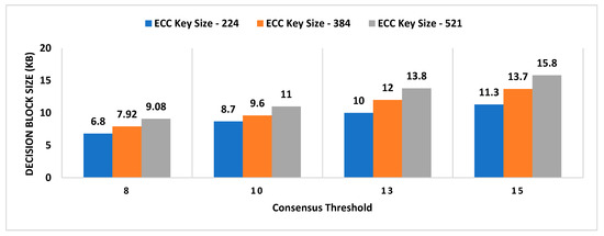 Consensus threshold and key size impact on decision block size.